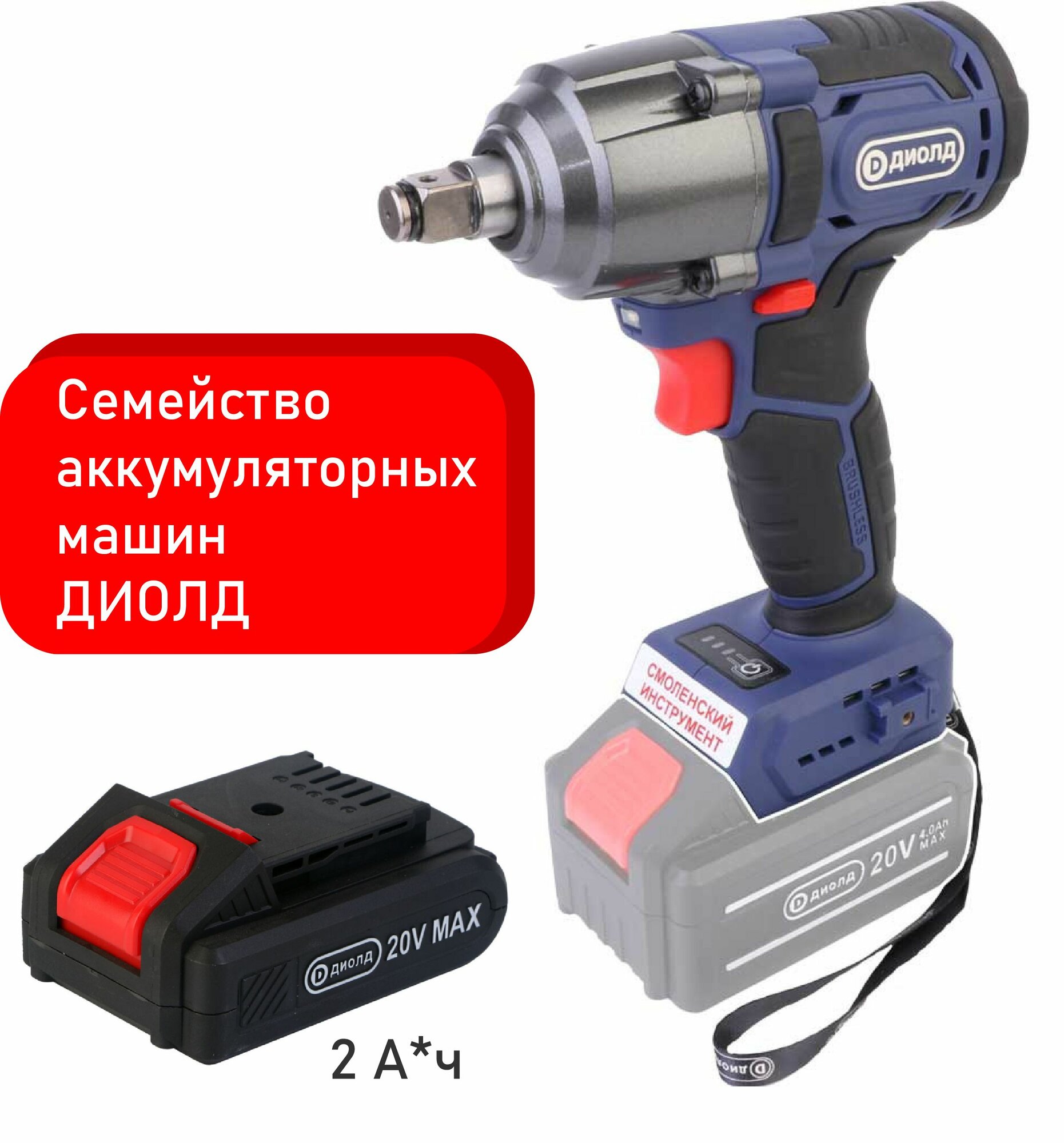Аккумуляторный ударный гайковерт диолд ГА-20ЛИ-01 (10300031), 4 А·ч