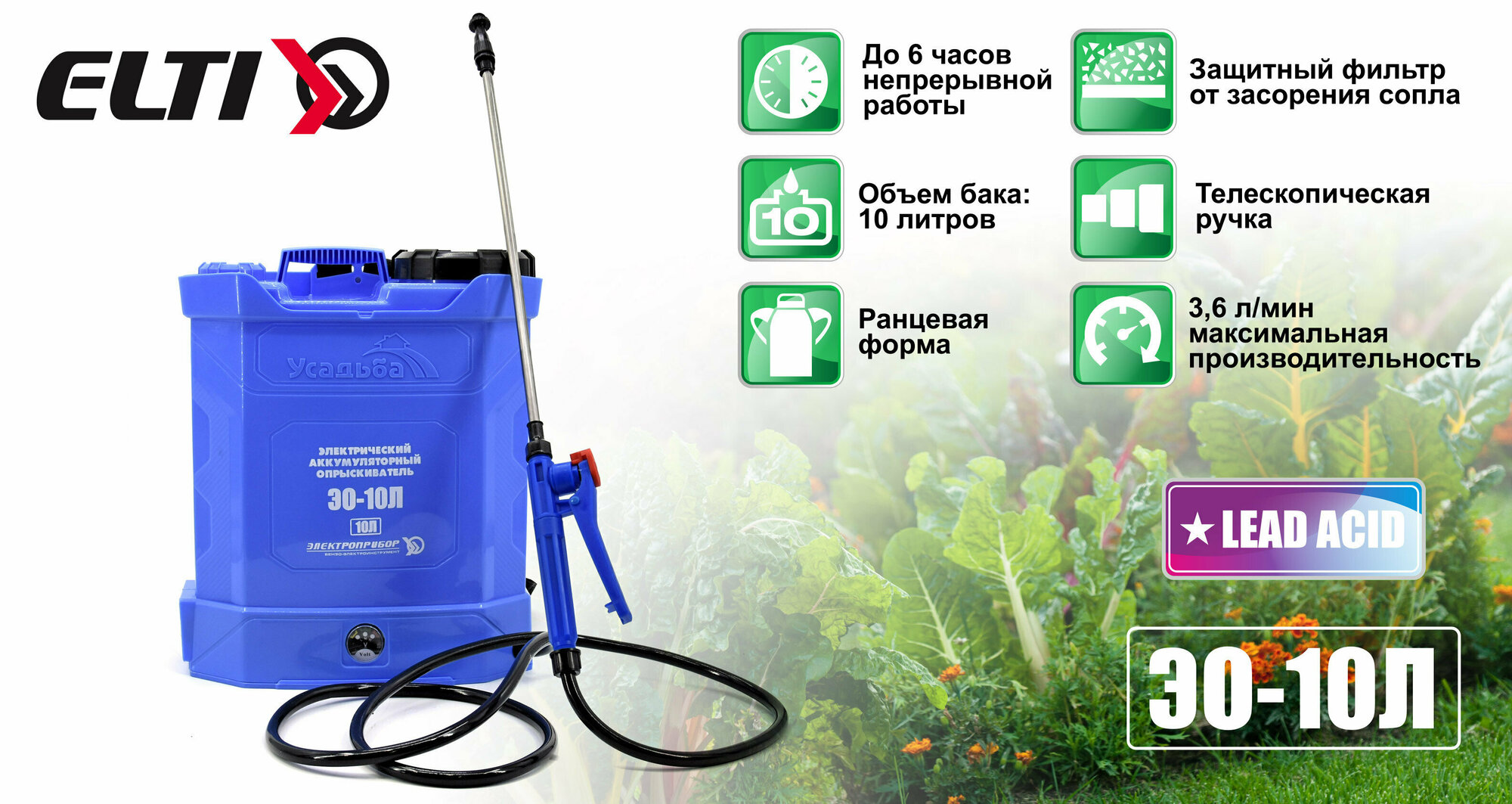 Опрыскиватель аккумуляторный Усадьба ЭО-10Л, 10 л, свинцово-кислотный интересное: