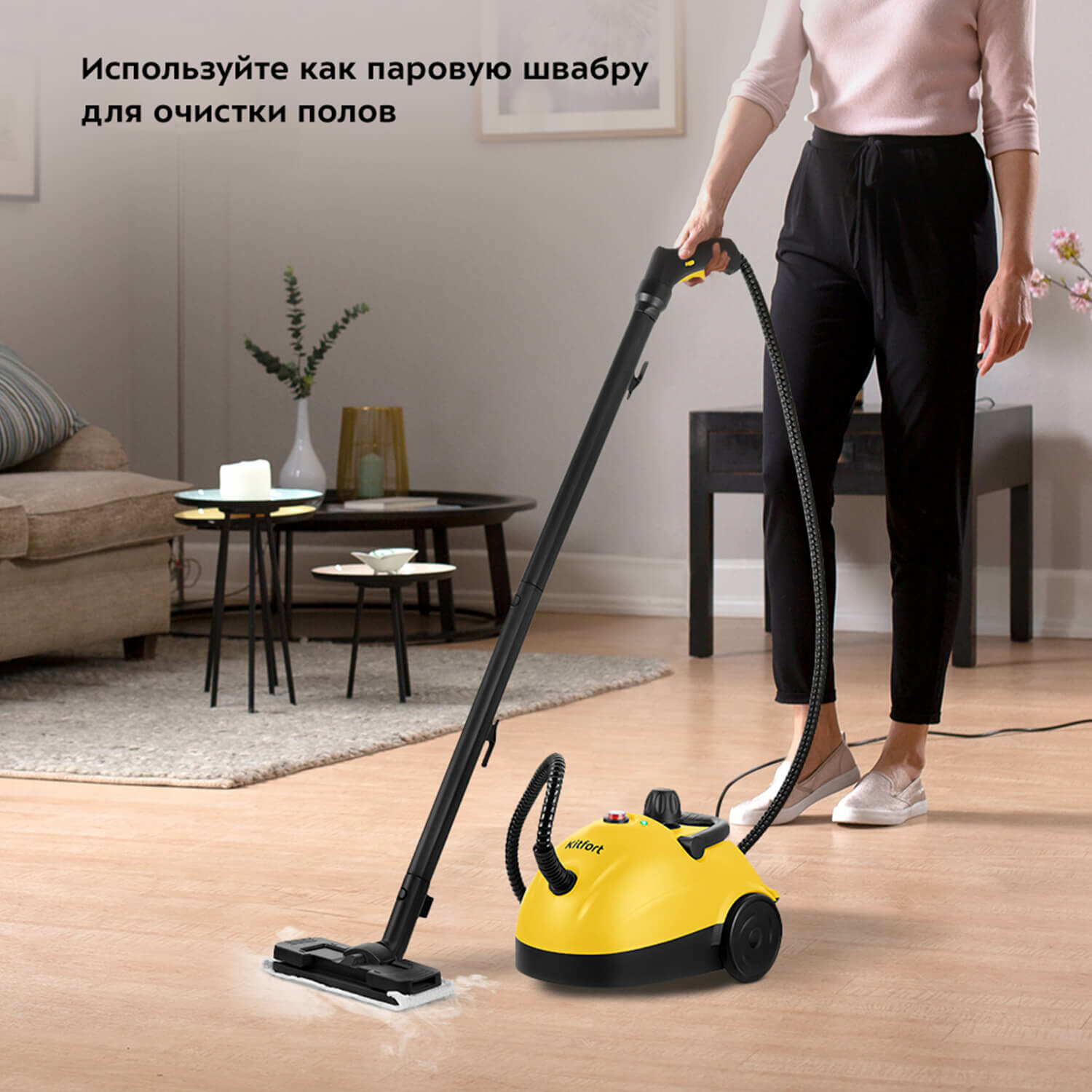 Пароочиститель Kitfort КТ-9136-1, 1500 Вт, 1 л, 50 г/мин, нагрев 8 мин, жёлтый интересное: