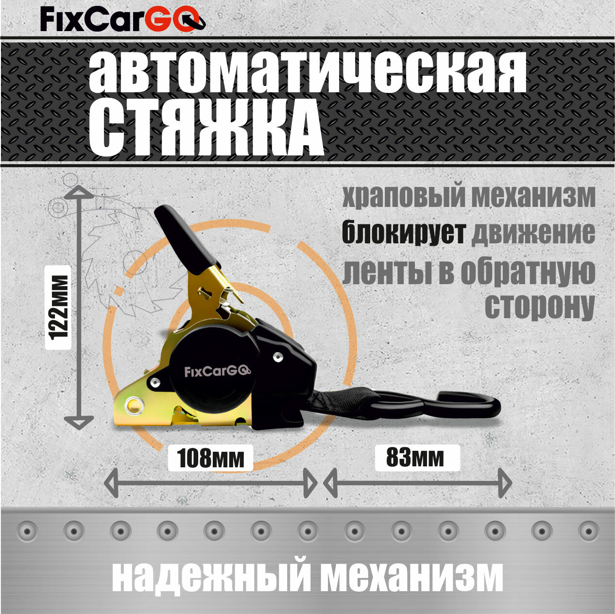 Купить Самозатягивающийся ремень крепления груза 25 мм, 2,7 м, крюк-болт.