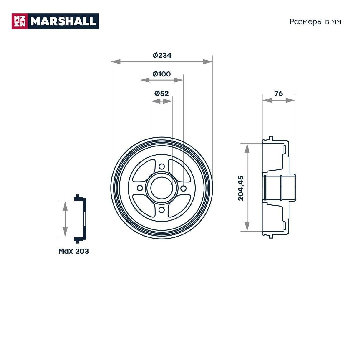 Барабан Тормозной Renault Logan 04-, Sandero 07-, Symbol 08- D=203 Мм (+Abs) Marshall MARSHALL арт. M1900902