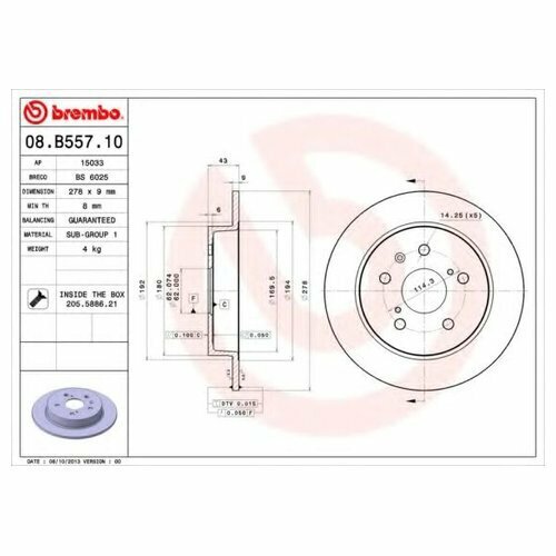 Ниже Вы можете прочитать отзывы на Диск тормозной задний BREMBO 08.B557.10, ознакомится с подробными характеристиками, посмотреть интересные обзоры и фотографии на Диск тормозной задний BREMBO 08.B557.10.
