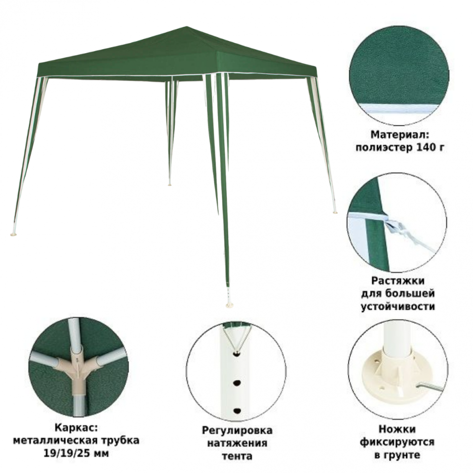 Тент садовый для дачи, шатер туристический для отдыха 2,4х2,4м/3x3x2,5м полиэстер, Green Glade 1018
