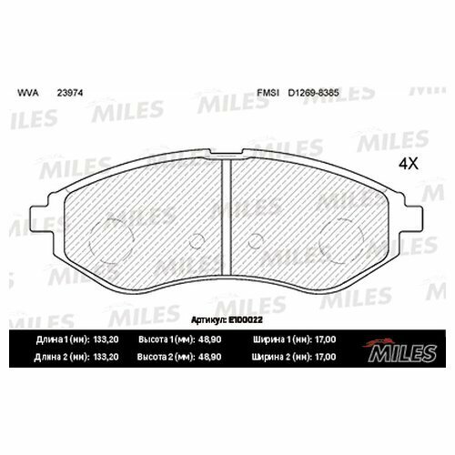 Купить Колодки передние (CHEVROLET AVEO (T250, T255)) E100022 MILES E100022