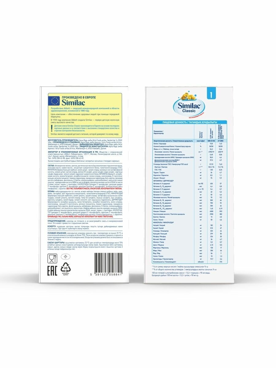 Смесь Similac Classic 1, от 0 до 6 месяцев, 300 г интересное: