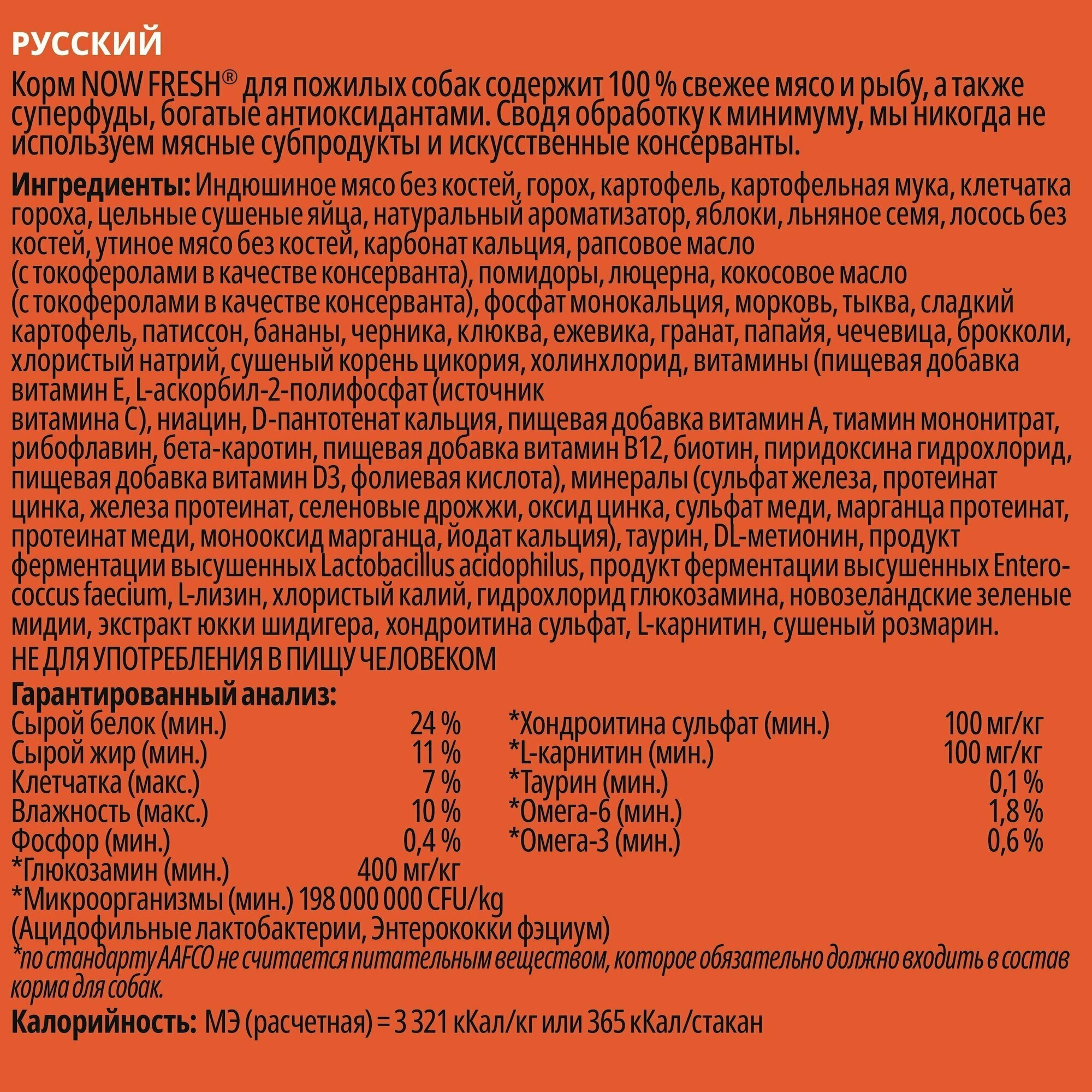 Купить NOW FRESH Контроль веса - беззерновой корм для Собак с Индейкой Уткой и овощами (Fresh Senior Recipe Grain Free 2410) 2303222 9,98 кг 52498 (1 шт)