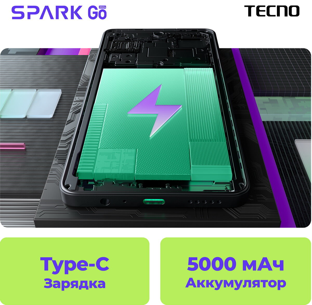 Смартфон TECNO Spark Go 2024 4/64 ГБ Global для РФ, Dual nano SIM, черный