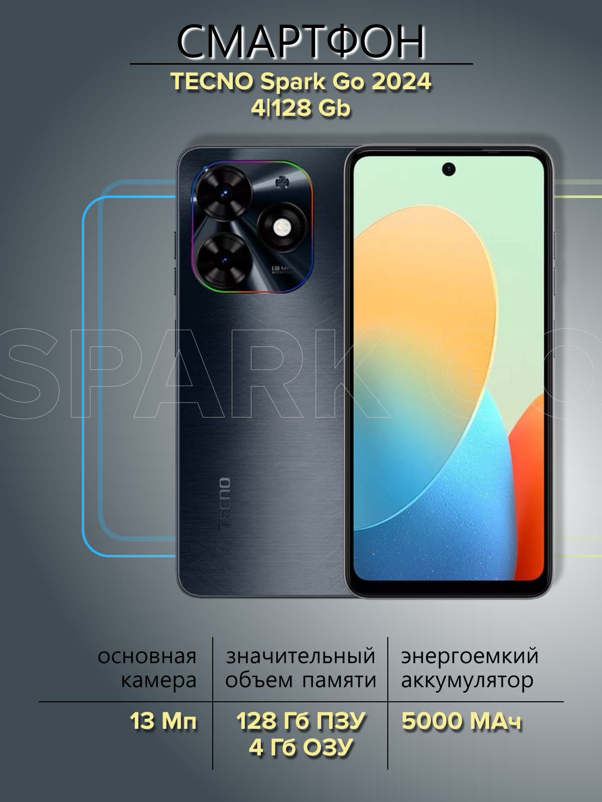 Смартфон TECNO Spark Go 2024 4/128 ГБ , Dual nano SIM, черный