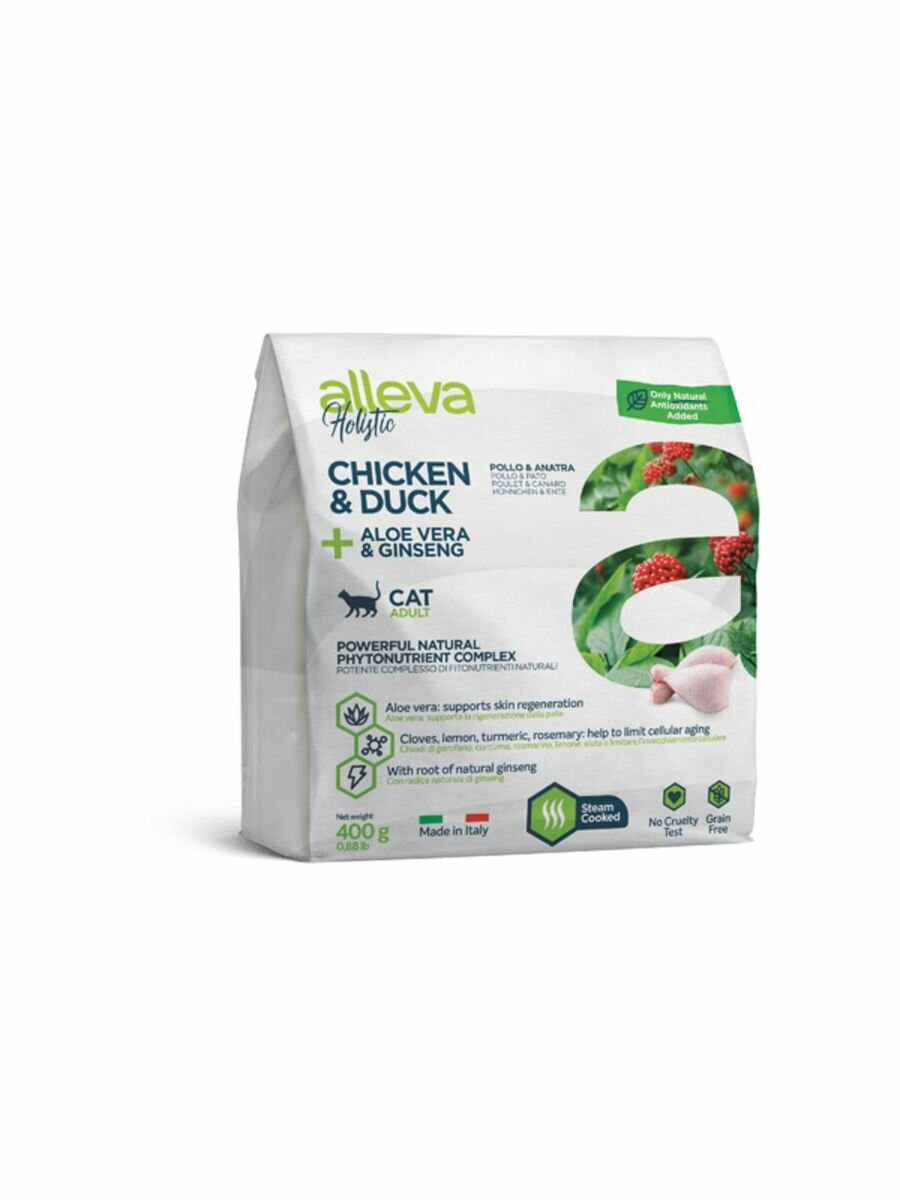 ALLEVA HOLISTIC ADULT CAT CHICKEN & DUCK беззерновой для взрослых кошек с курицей, уткой, алоэ вера и женьшенем (0,4 кг)