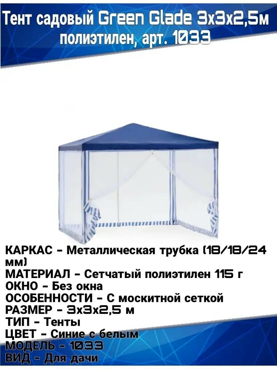 Купить Тент садовый Green Glade 1033 3х3х2,5м полиэтилен