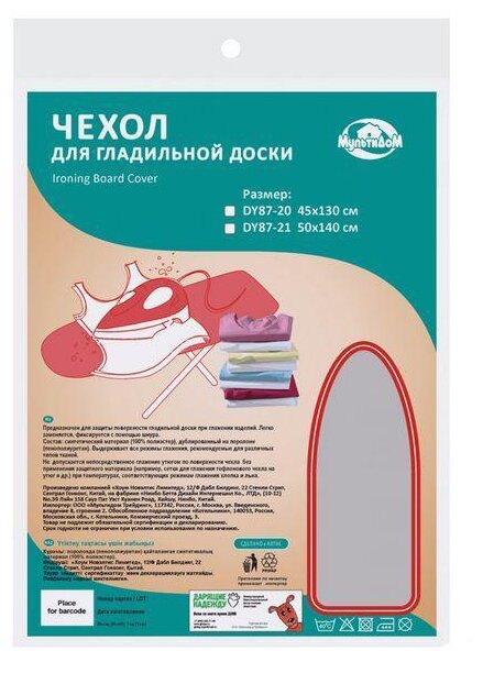 Чехол Мультидом DY87-20 для гладильной доски, 45x130 см .