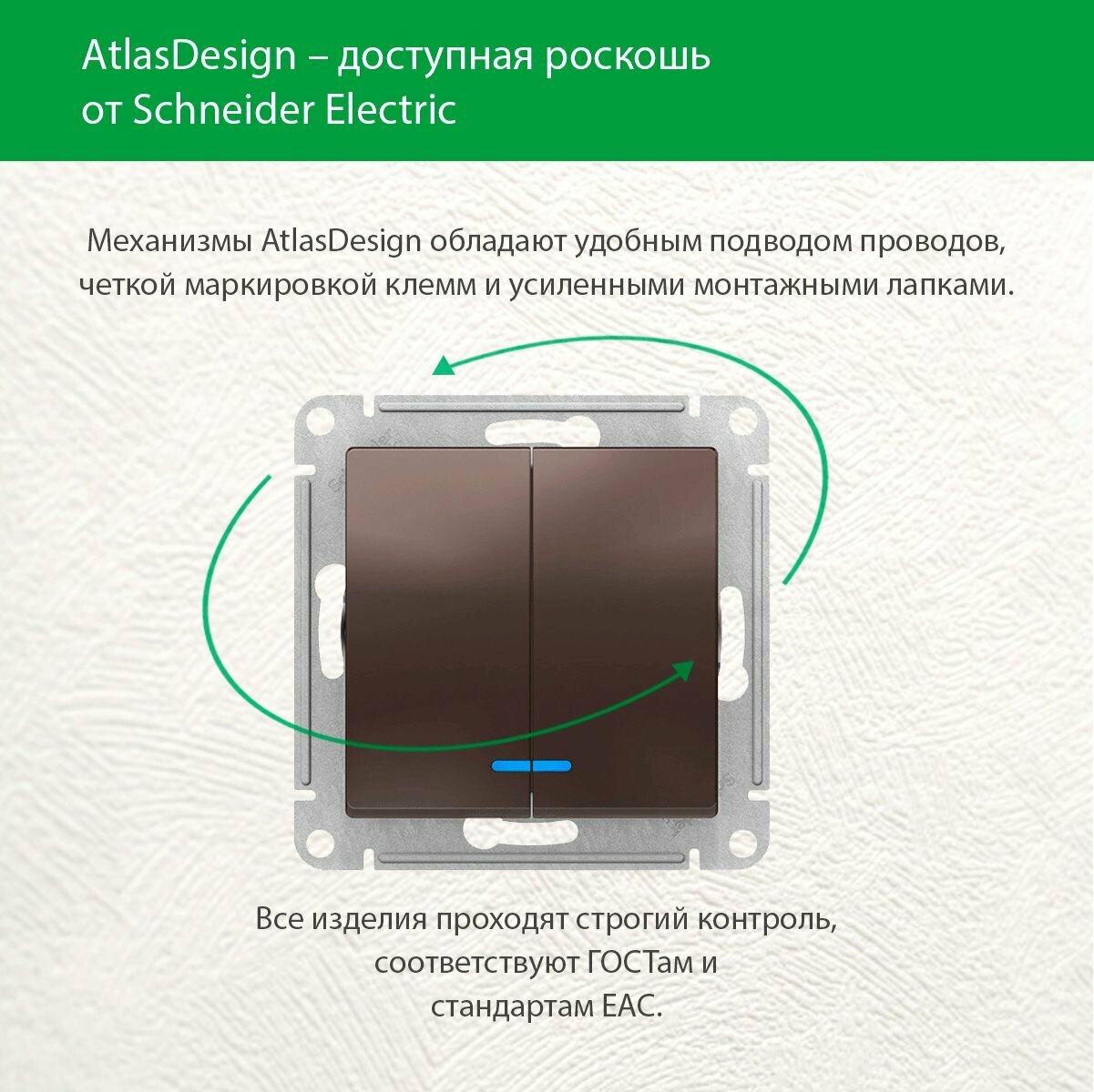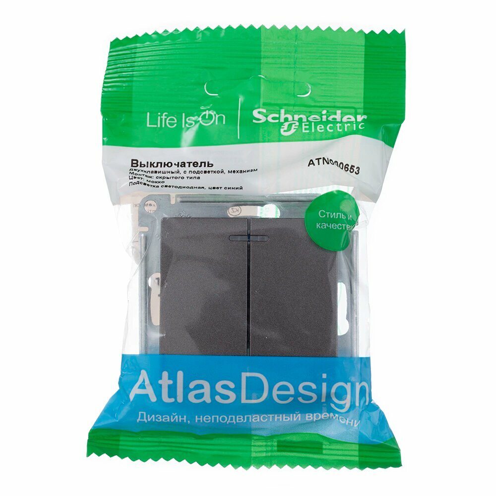 СохранитьSE AtlasDesign Мокко Выключатель 2-клавишный с подсветкой, сх.5а, 10АХ, механизм ATN000653 интересное: