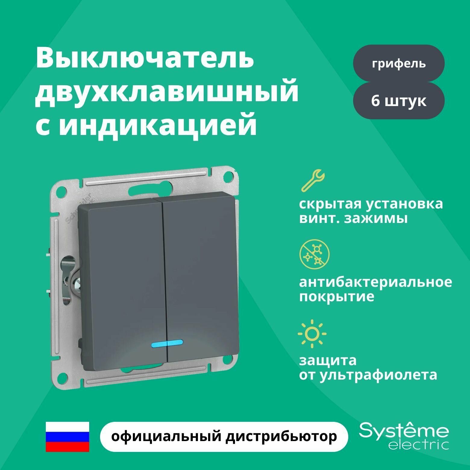 Механизм выключателя 2-кл. СП AtlasDesign 10А IP20 (сх. 5а) 10AX с подсветкой грифель SchE ATN000753 (6шт. в упак.)