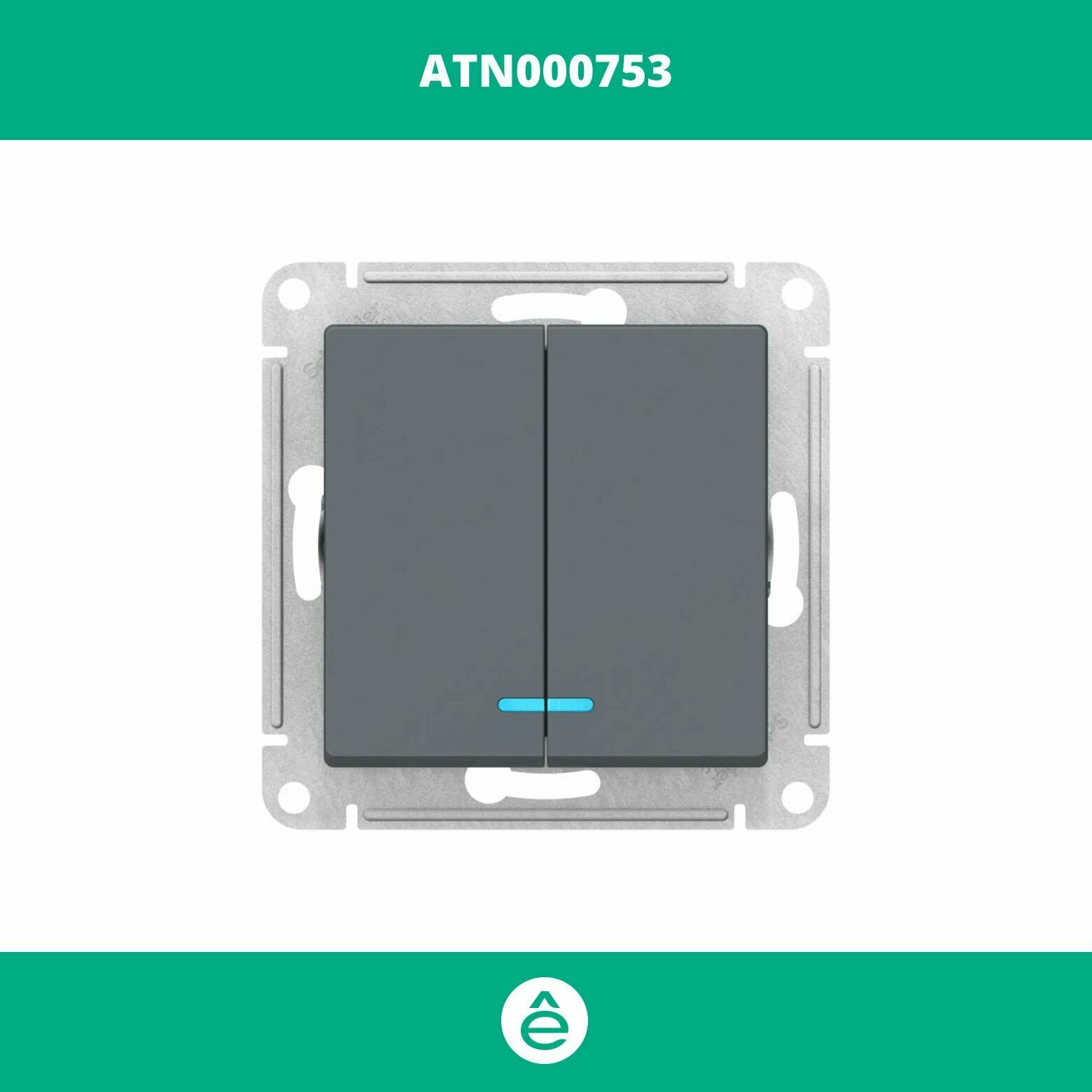 Механизм выключателя 2-кл. СП AtlasDesign 10А IP20 (сх. 5а) 10AX с подсветкой грифель SchE ATN000753 (4шт. в упак.)