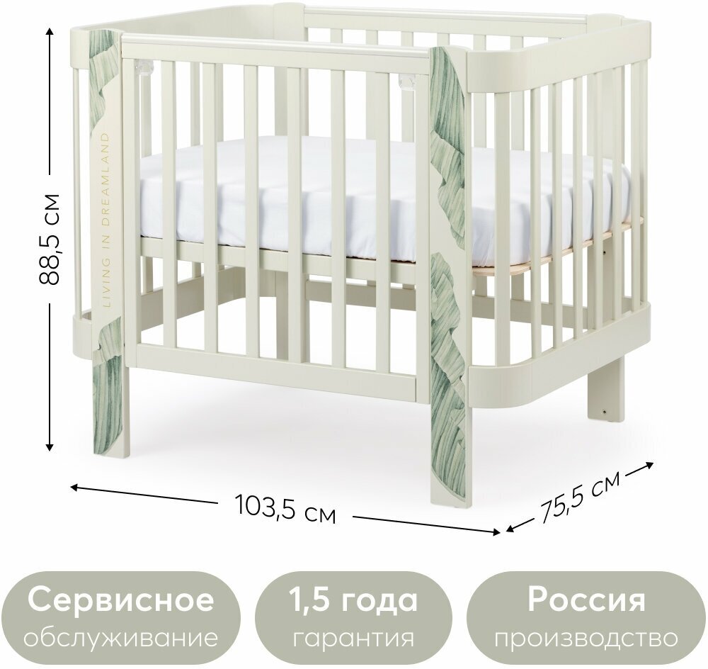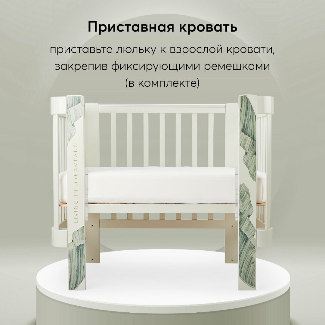 95024 Кроватка для новорожденных трансформер с опускающейся стенкой от 0, Happy Baby MOMMY LOVE, люлька-кроватка, колёса, маятник, зеленая интересное: