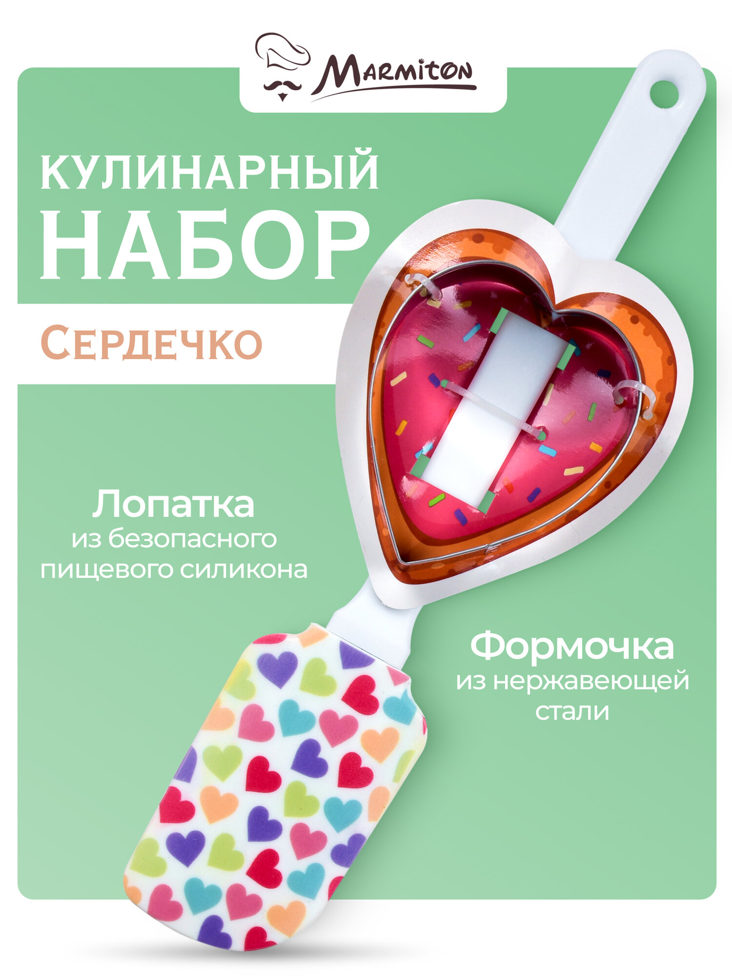 Набор кулинарный "Сердечко", 2 предмета (лопатка 25 см, формочка 6,5*7,5 см) MARMITON интересное: