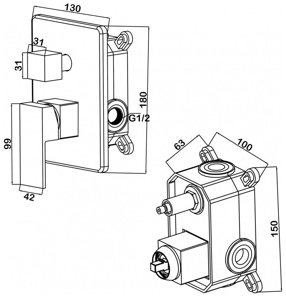 Смеситель встраиваемый Swedbe Platta на 2 выхода в монтажном боксе