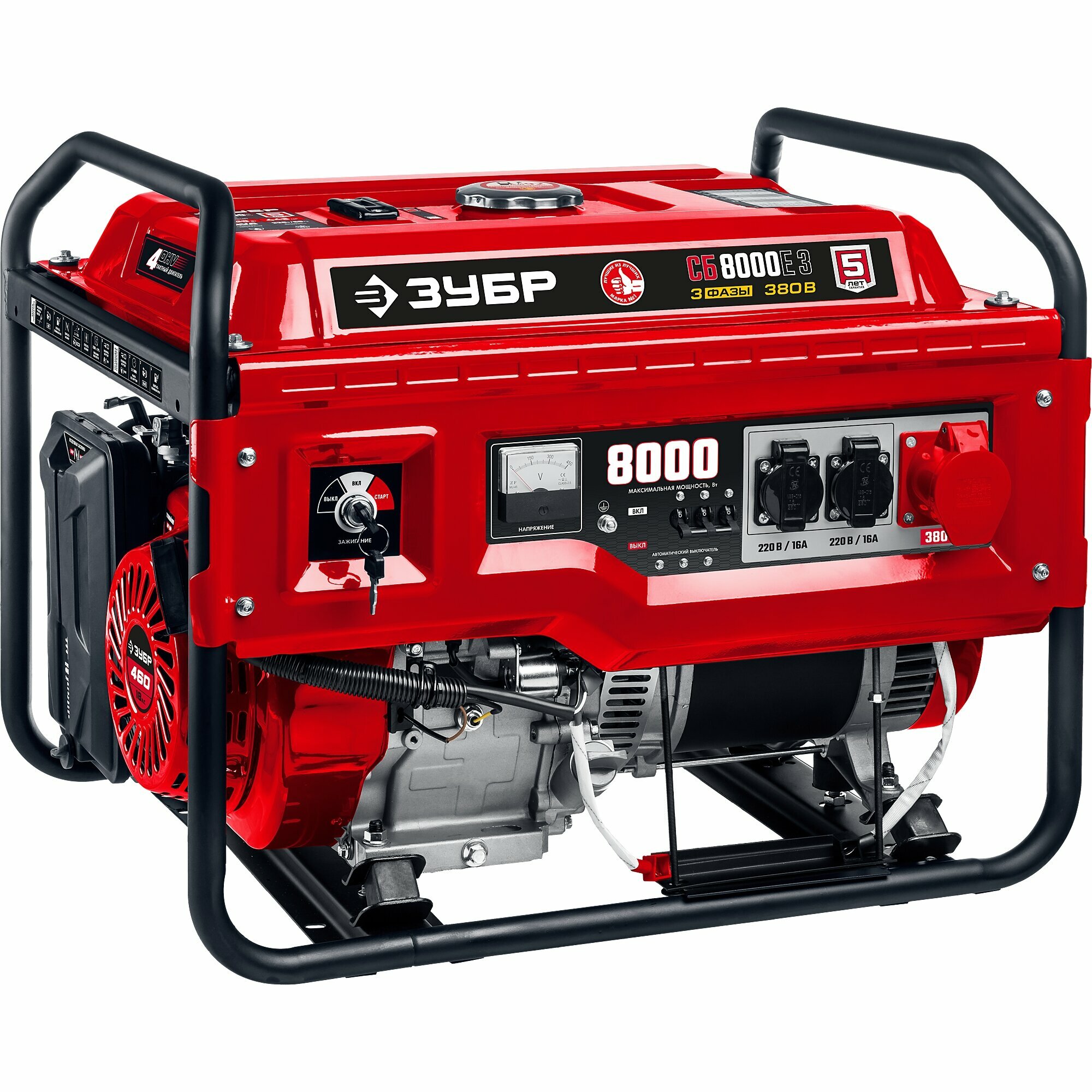 ЗУБР 8 кВт, трехфазный, синхронный, щеточный, с электростартером, бензиновый генератор СБ-8000Е-3 Мастер