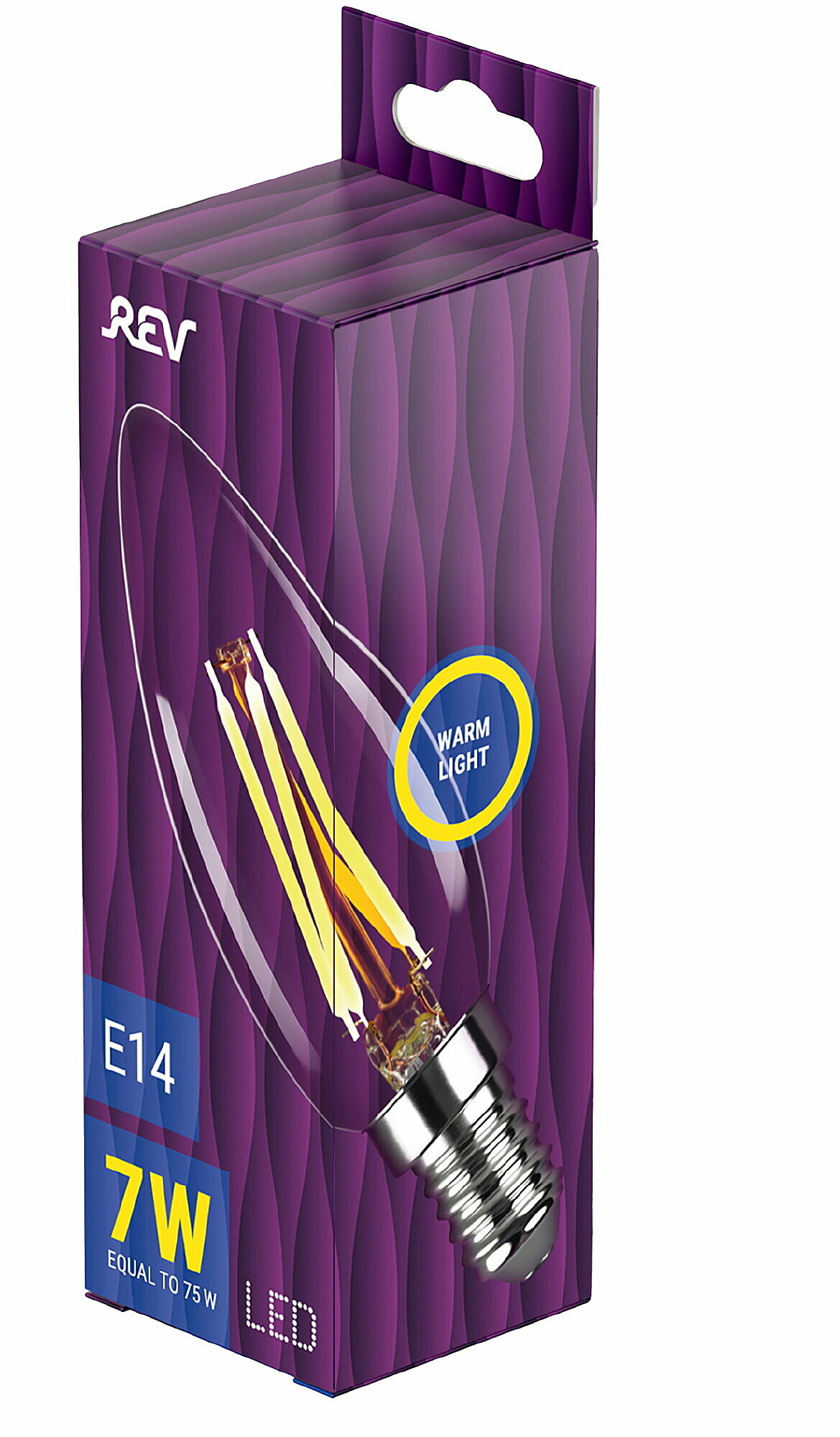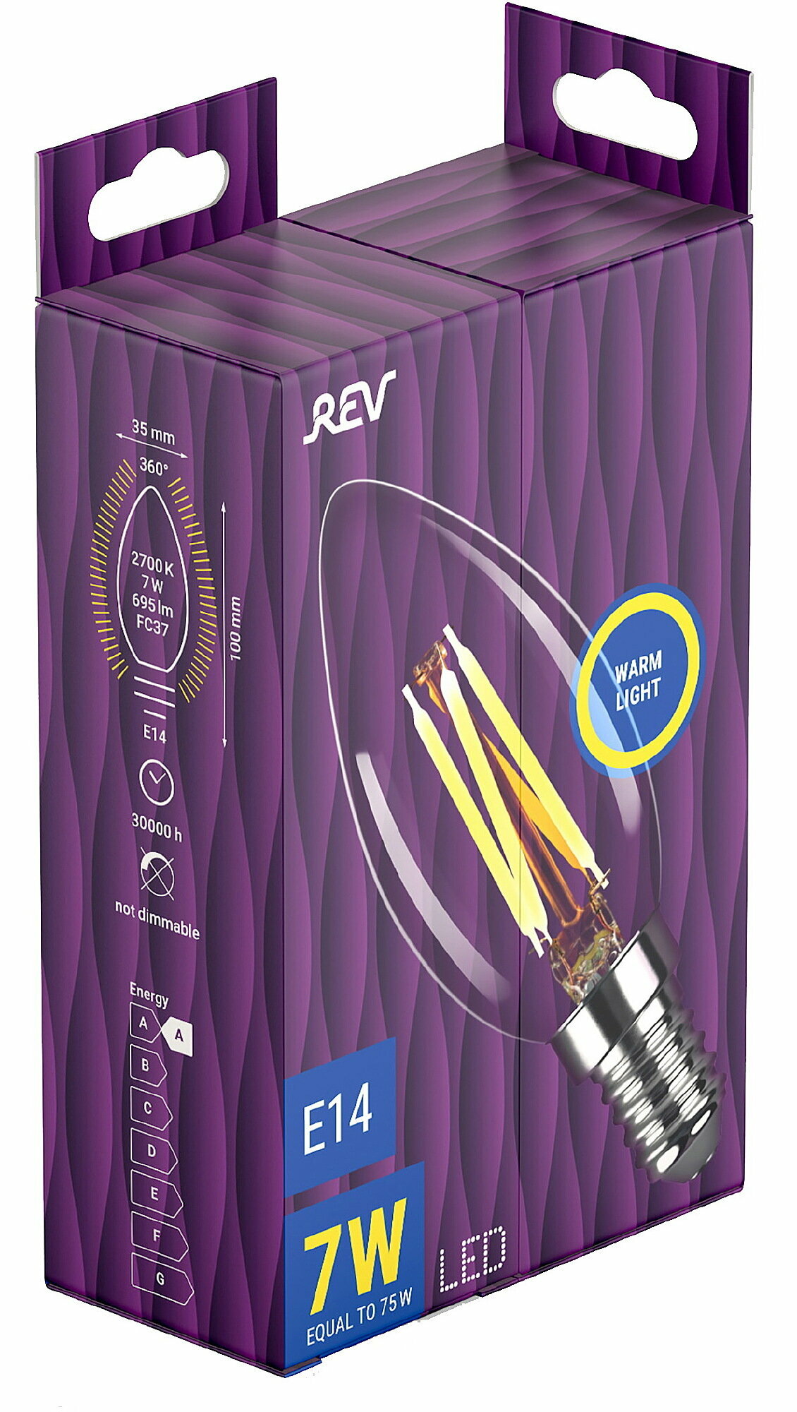 Лампа светодиодная (комплект 5 шт.) REV FILAMENT С37, E14, 7W, 2700K, DECO Premium, 32486 7 интересное: