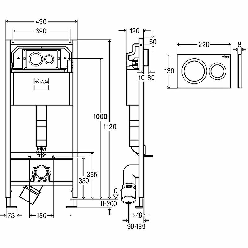 Система инсталляции Viega Prevista Dry 8524.13 792855 для унитазов с кнопкой смыва