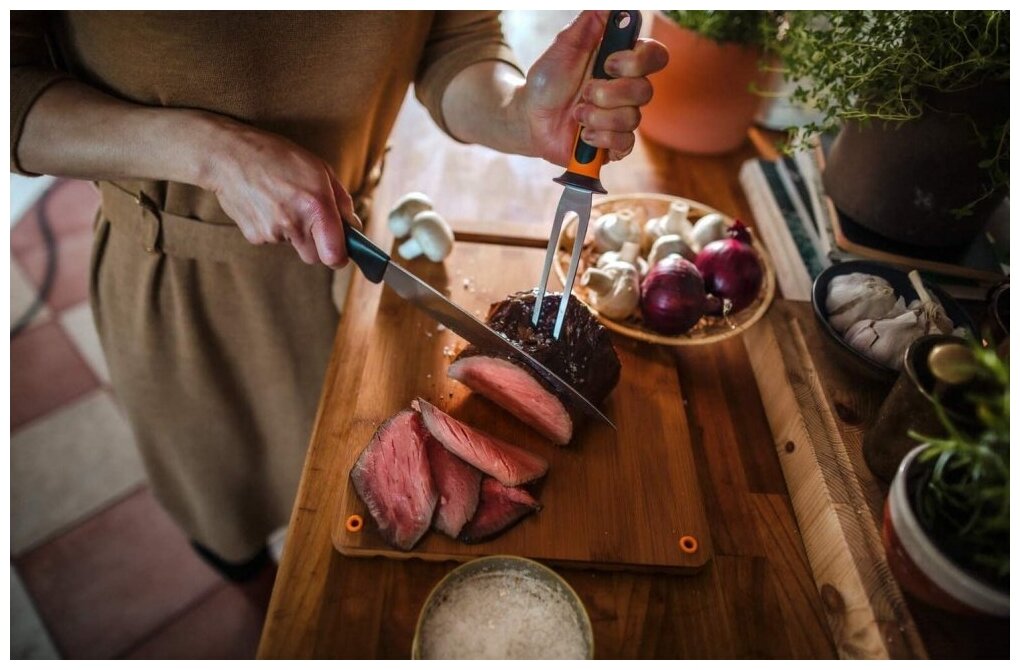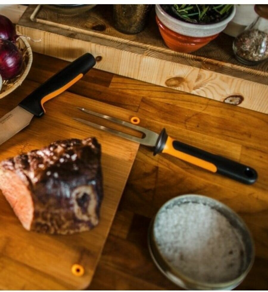 Вилка Fiskars для мяса Functional Form 1057548 черный/оранжевый интересное: