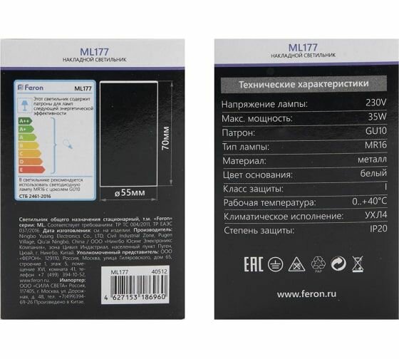 | Дополнительная информация | климатическое исполнение УХЛ4; рабочая температура 0..+40°C; лампа MR16 не в комплекте |