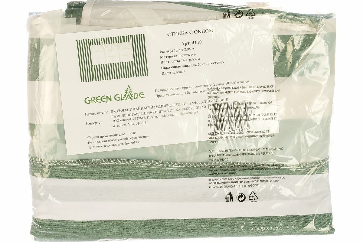 Стенка для садового тента Green Glade 1,95х2,95м полиэстер с окном зеленая интересное: