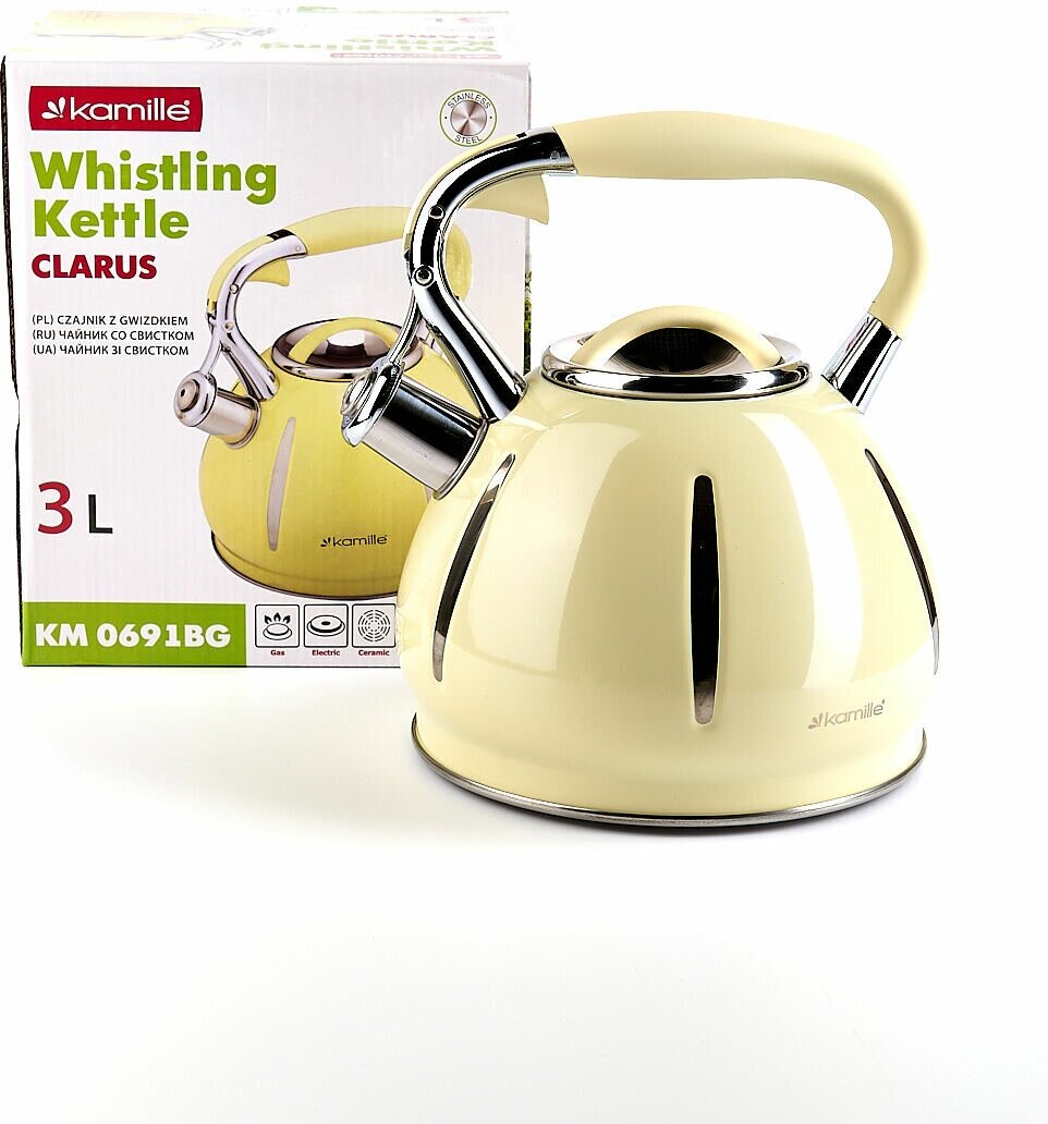 Чайник 3 л. из нержавеющей стали со свистком Kamille KM-0691 (0691BG / бежевый) интересное: