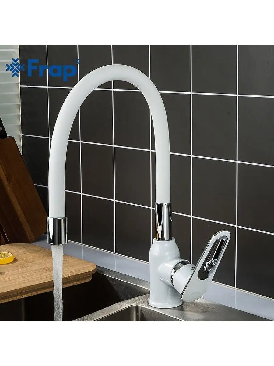 Смеситель для кухни Frap F4453-03, гибкий излив, однорычажный, белый