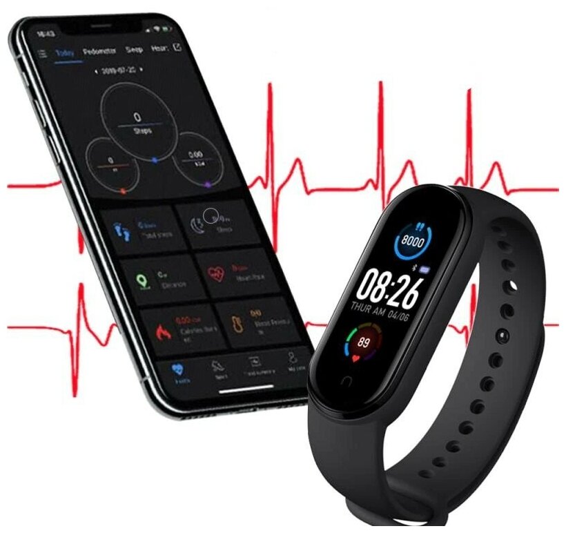Фитнес браслет / умный браслет M5 с измерением давления, пульсометром, уведомления о входящих звонках, мониторинг сна, Android и IOS, черный интересное: