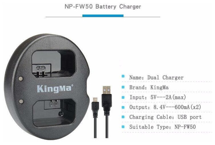 Ниже Вы можете прочитать отзывы на Зарядное устройство двойное KingMa BM015 для аккумуляторов NP-FW50 BM015-FW50, ознакомится с подробными характеристиками, посмотреть интересные обзоры и фотографии на Зарядное устройство двойное KingMa BM015 для аккумуляторов NP-FW50 BM015-FW50.