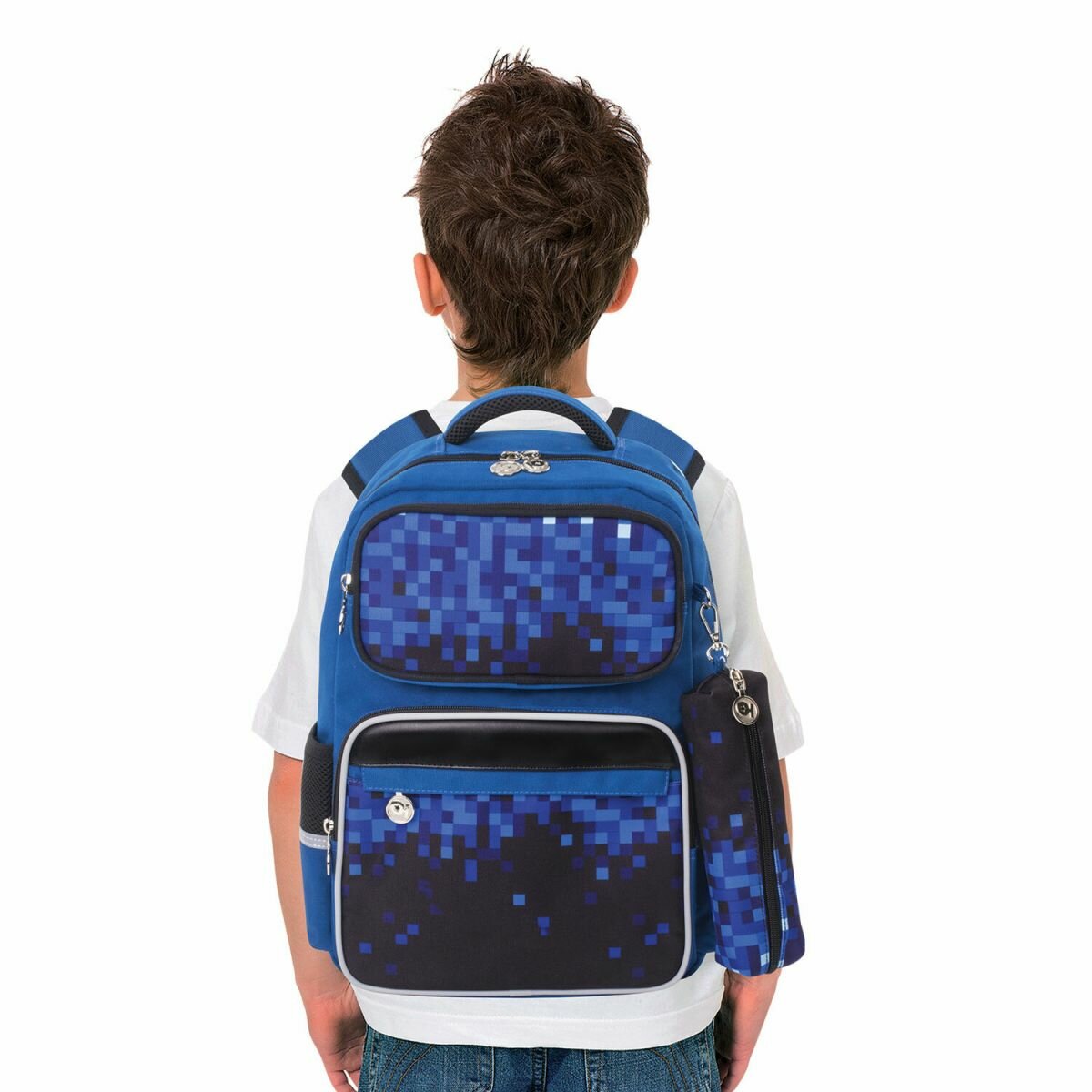 Купить Рюкзак юнландия COMPLETE, с пеналом в комплекте, эрго-спинка, «Pixels», 42х29х14 см, 229974