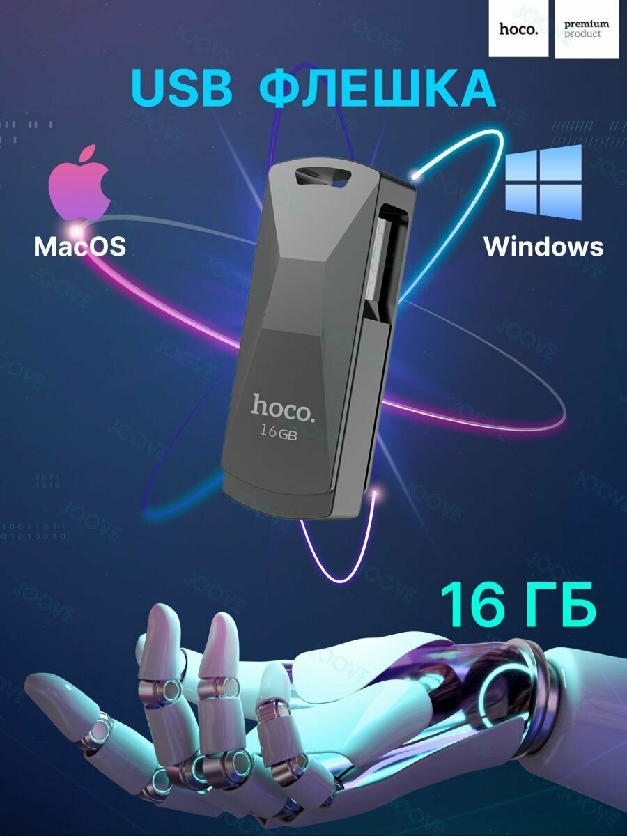 USB флеш-накопитель HOCO UD5 Wisdom, USB 3.0, 16GB, Темно-Серый интересное: