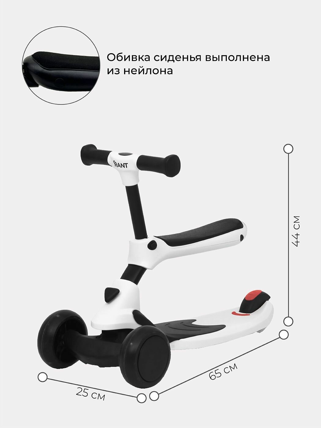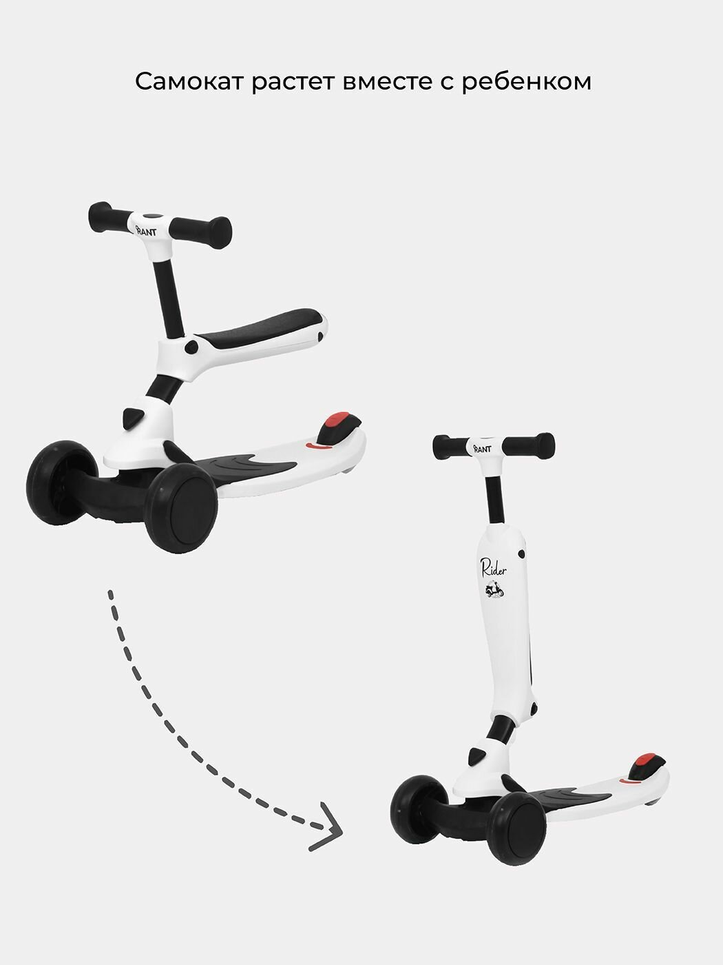 Беговел-самокат Rant RB100 "Rider" со светящимися колесами (белый) . интересное: