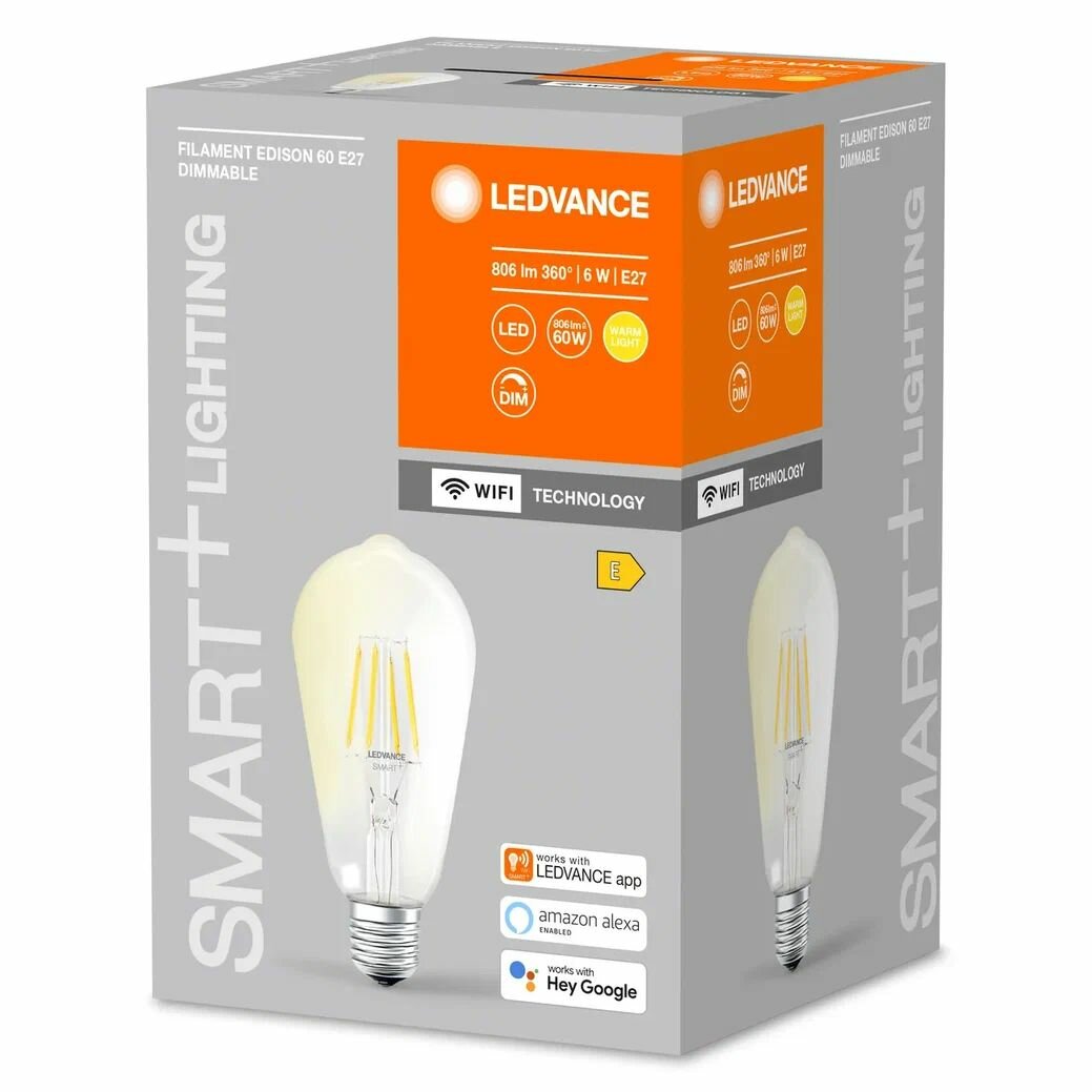 Умная лампочка светодиодная филаментная LEDVANCE / OSRAM SMART+ ST64, E27, 5,5Вт, 2700К, 806лм, теплый свет, диммируемая интересное: