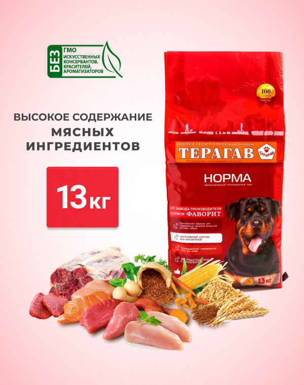 Сухой корм для собак Терагав Норма 13 кг интересное:
