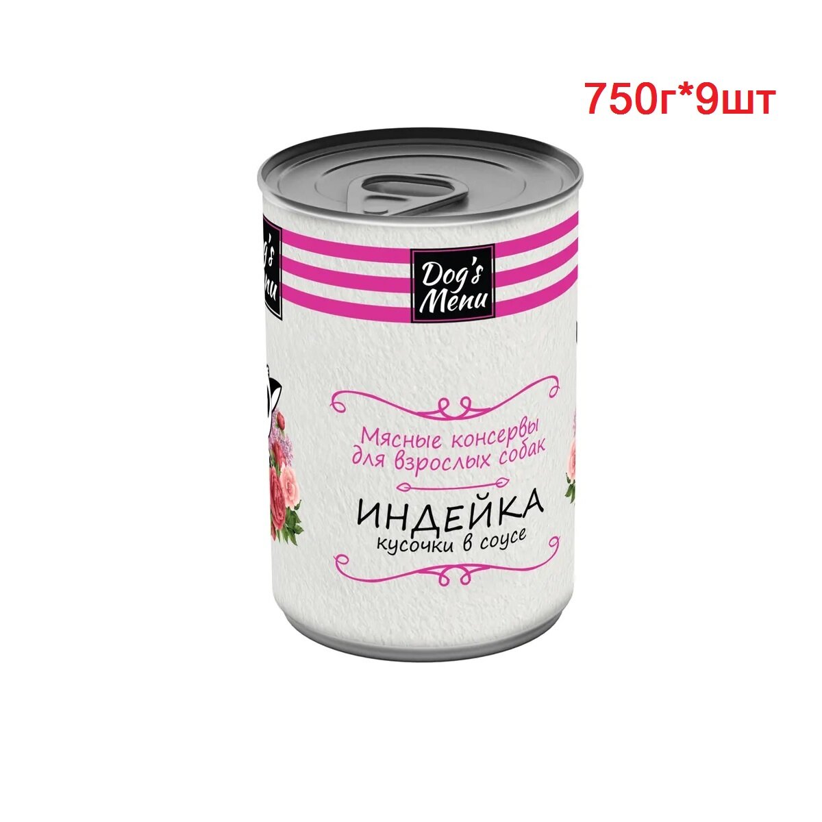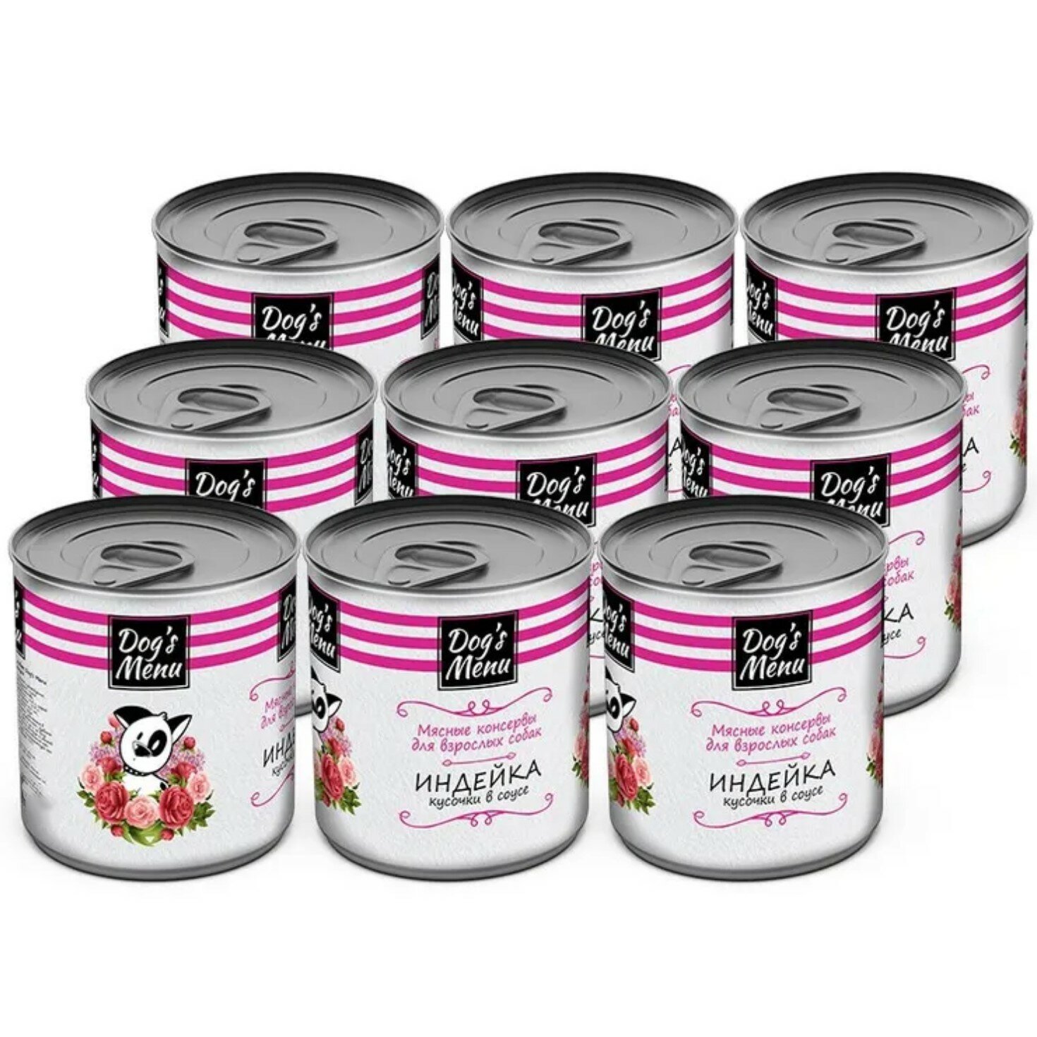 Консервы Догс Меню для взрослых собак с Индейкой кусочки в соусе (цена за упаковку) 750г х 9шт