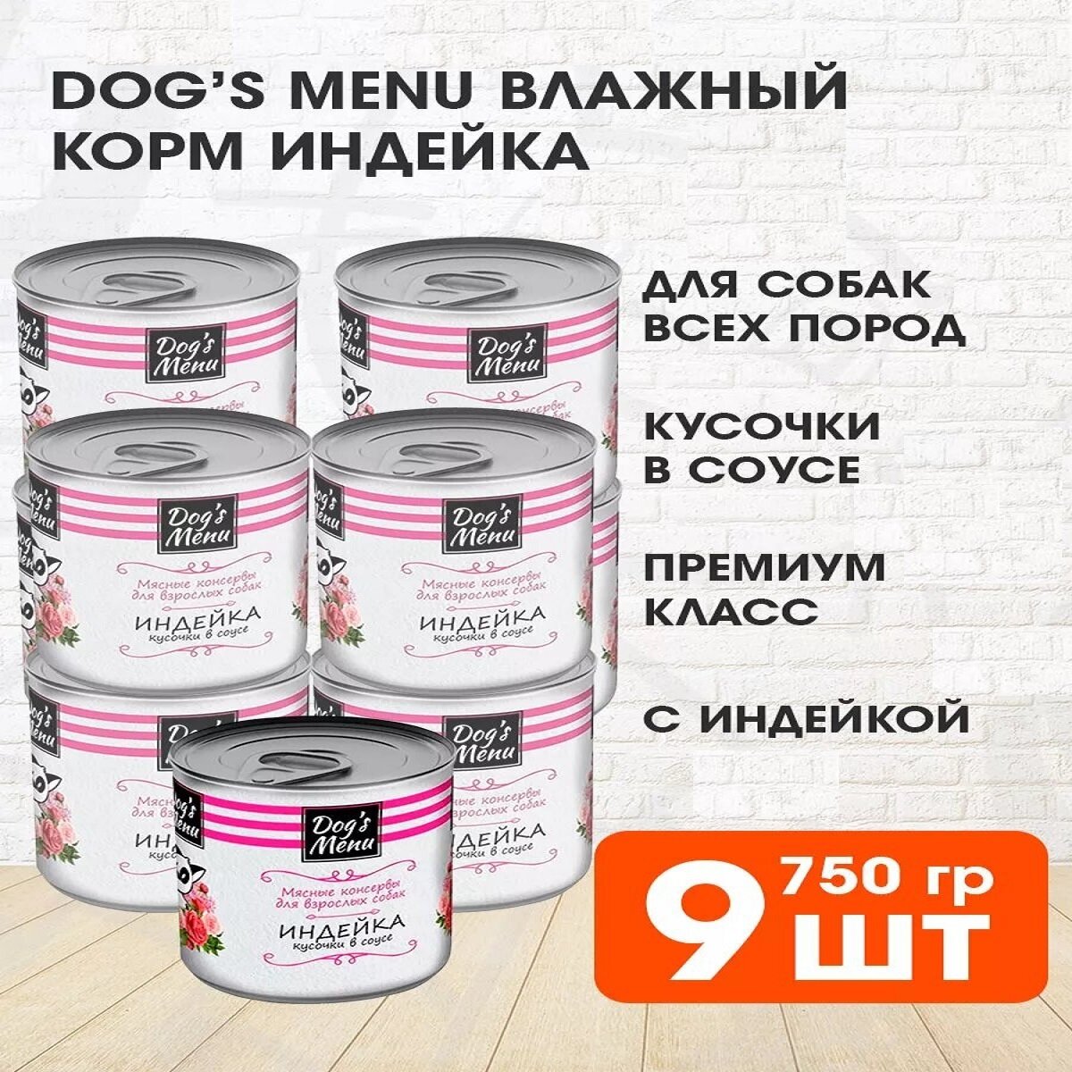 Купить DOG’S MENU для взрослых собак с индейкой в соусе (750 гр х 9 шт)