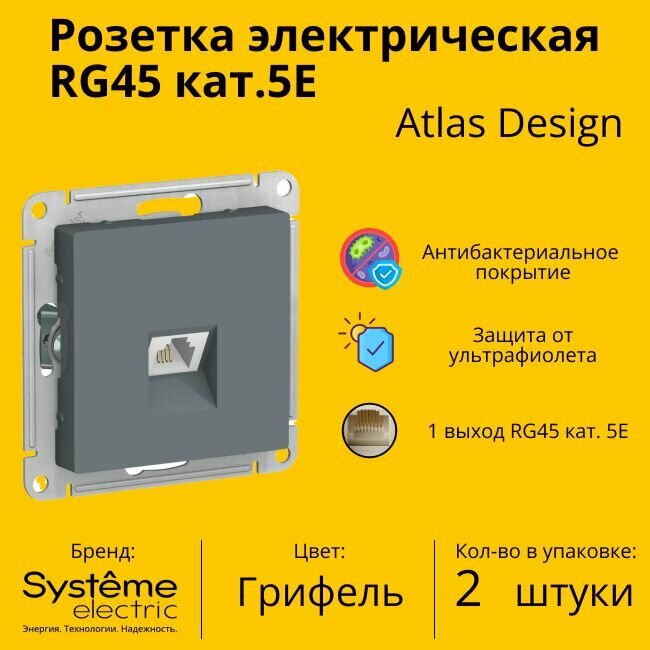 Купить Розетка одноместная компьютерная электрическая Systeme Electric Atlas Design RJ45 кат.5E, Грифель ATN000783 - 2 шт.