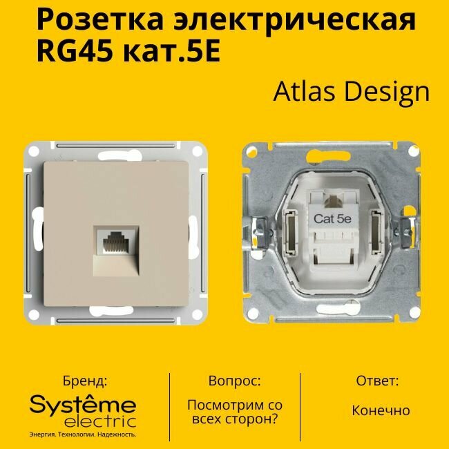 СохранитьРозетка одноместная компьютерная электрическая Systeme Electric Atlas Design RJ45 кат.5E, Песочный ATN001283 - 10 шт. интересное: