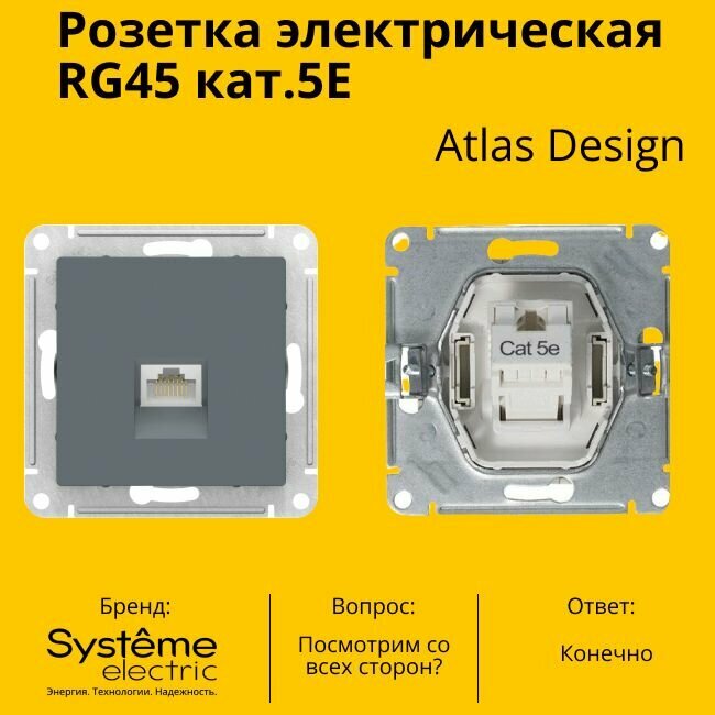 СохранитьРозетка одноместная компьютерная электрическая Systeme Electric Atlas Design RJ45 кат.5E, Грифель ATN000783 - 4 шт. интересное:
