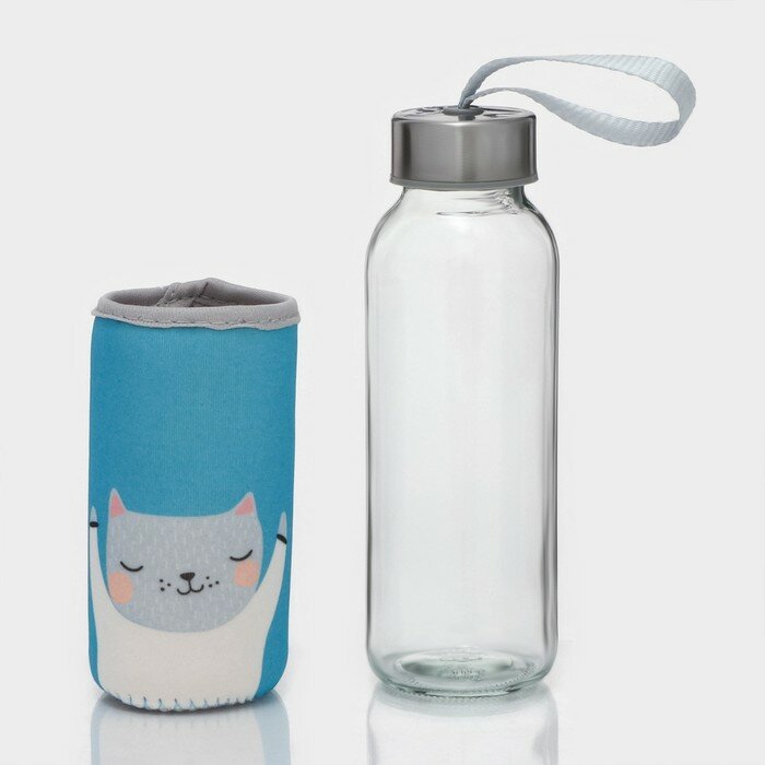 Бутылка для воды стеклянная в чехле «Милые животные», 300 мл, h=17 см, рисунок микс интересное: