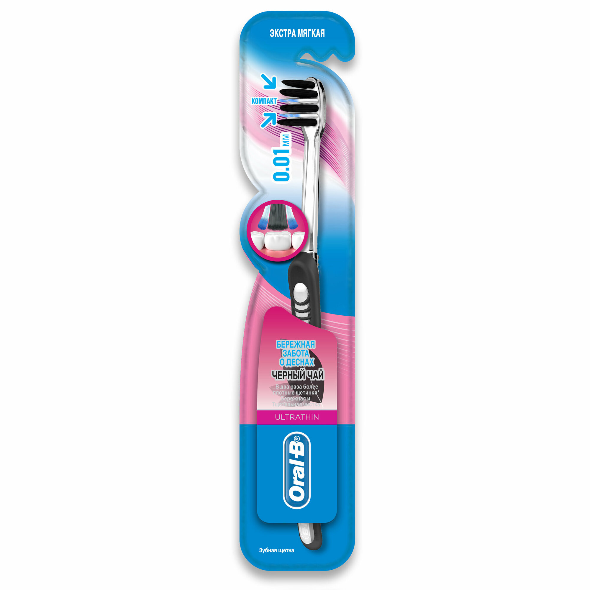 Oral-B UltraThin Зубная щетка, Бережная забота о деснах, Черный чай, экстра мягкая
