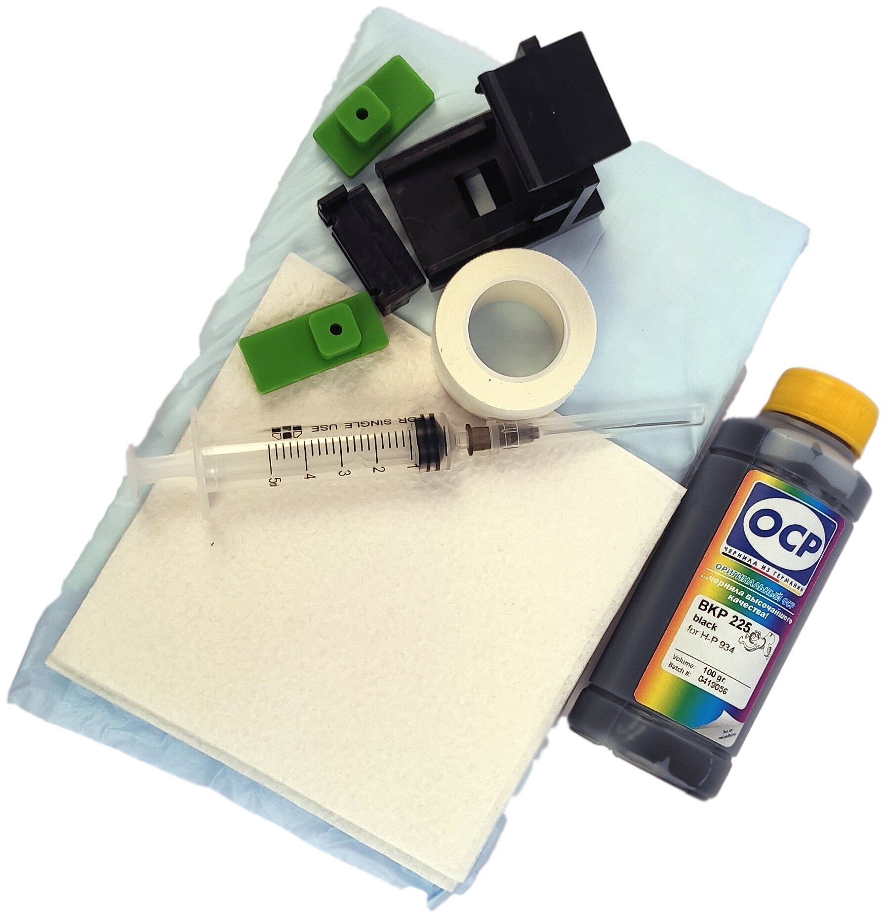 | Комплектация | Чернила OCP BKP 225 чёрные - 1шт, Площадка для прокачки картриджей - 1шт,Непромокаемая пелёнка - 1шт, Пластырь - 1шт, Ручное сверло - 1шт, Несколько салфеток - 5шт, шприц 5 мл с иглой - 4шт |