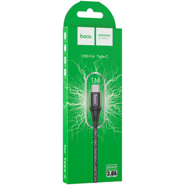 Купить Usb Кабель-зарядка Type-C Hoco X50 Excellent 3A 1м в тканевой оплётке чёрный