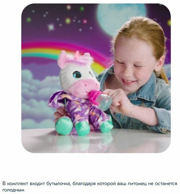 Интерактивная мягкая игрушка FurReal Friends Малыш Единорог F2066, белый/фиолетовый интересное:
