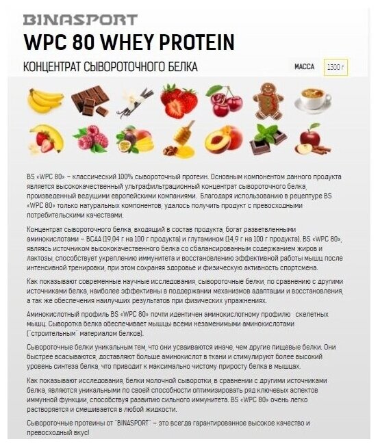 Купить Протеин сывороточный Binasport WPC 80 "ВиПиСи 80" 1300 г со вкусом шоколада и мяты