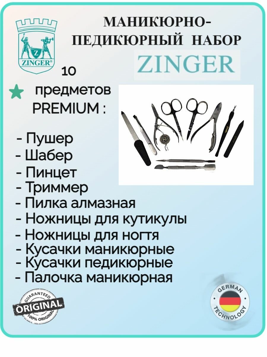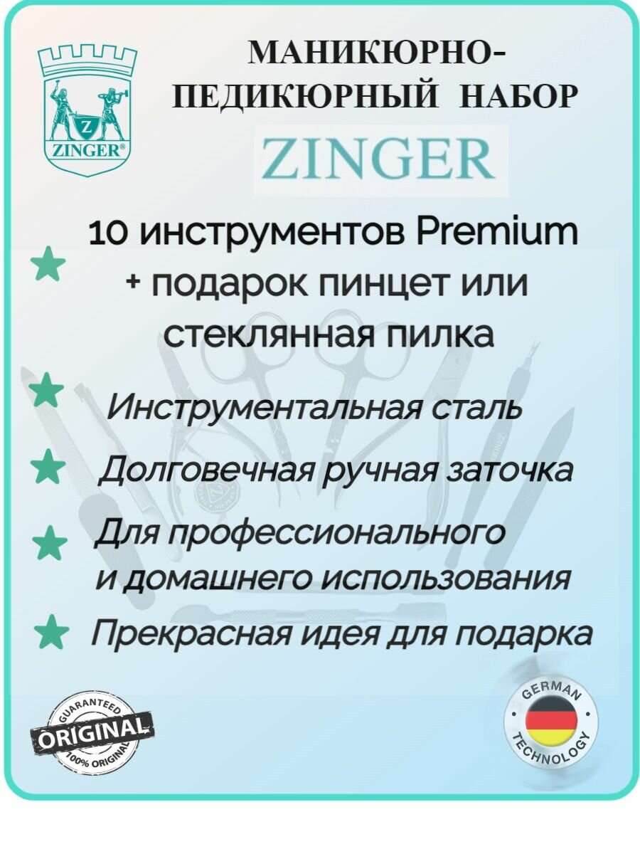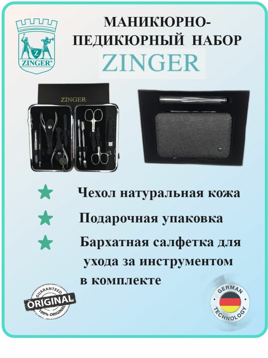 Маникюрный набор Zinger MSFE-804, 10 предметов, серебристый/чёрный лак
