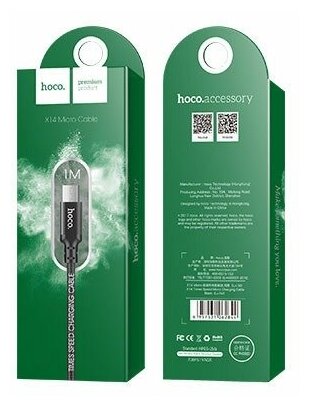 Micro USB кабель hoco 6957531062905 X14, черный 2.0m