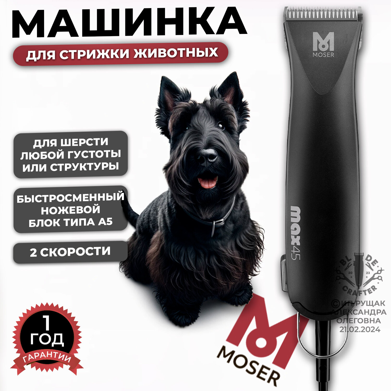 Сетевая машинка Moser для стрижки животных Max45, с быстросъемным ножевым блоком,черный